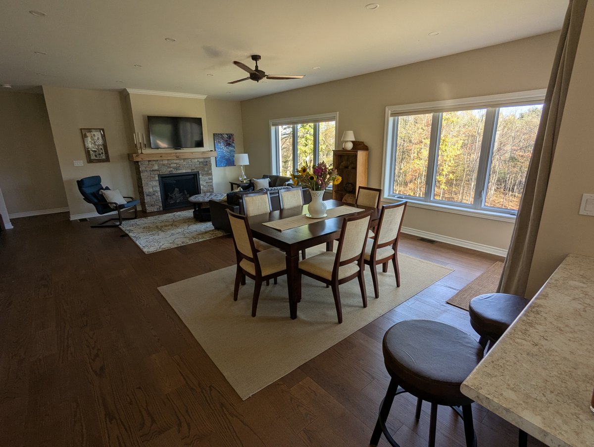 Set on two gorgeous acres, backing onto hundreds of acres of forested land, this home achieves a perfect blend of natural beauty, without compromising amenities and the comforts of home.