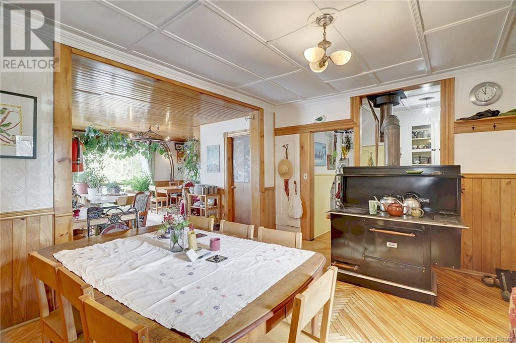 Main House: Heritage house built in the 1850s with regular and ongoing maintenance: 5 bedrooms; two bathrooms; full basement, with cold storage room and two full size freezers; summer kitchen, fully equipped for restaurant style service. One deck overlooking pond, two enclosed verandahs, one a fully quipped office. Living room, kitchen. Woodshed. Walls in the main kitchen have tin on the walls, with fleur de lys designs, and the ceiling in the living room is also tin.